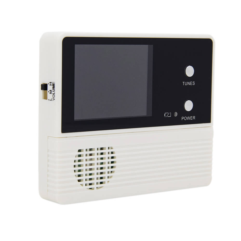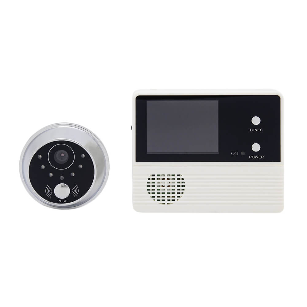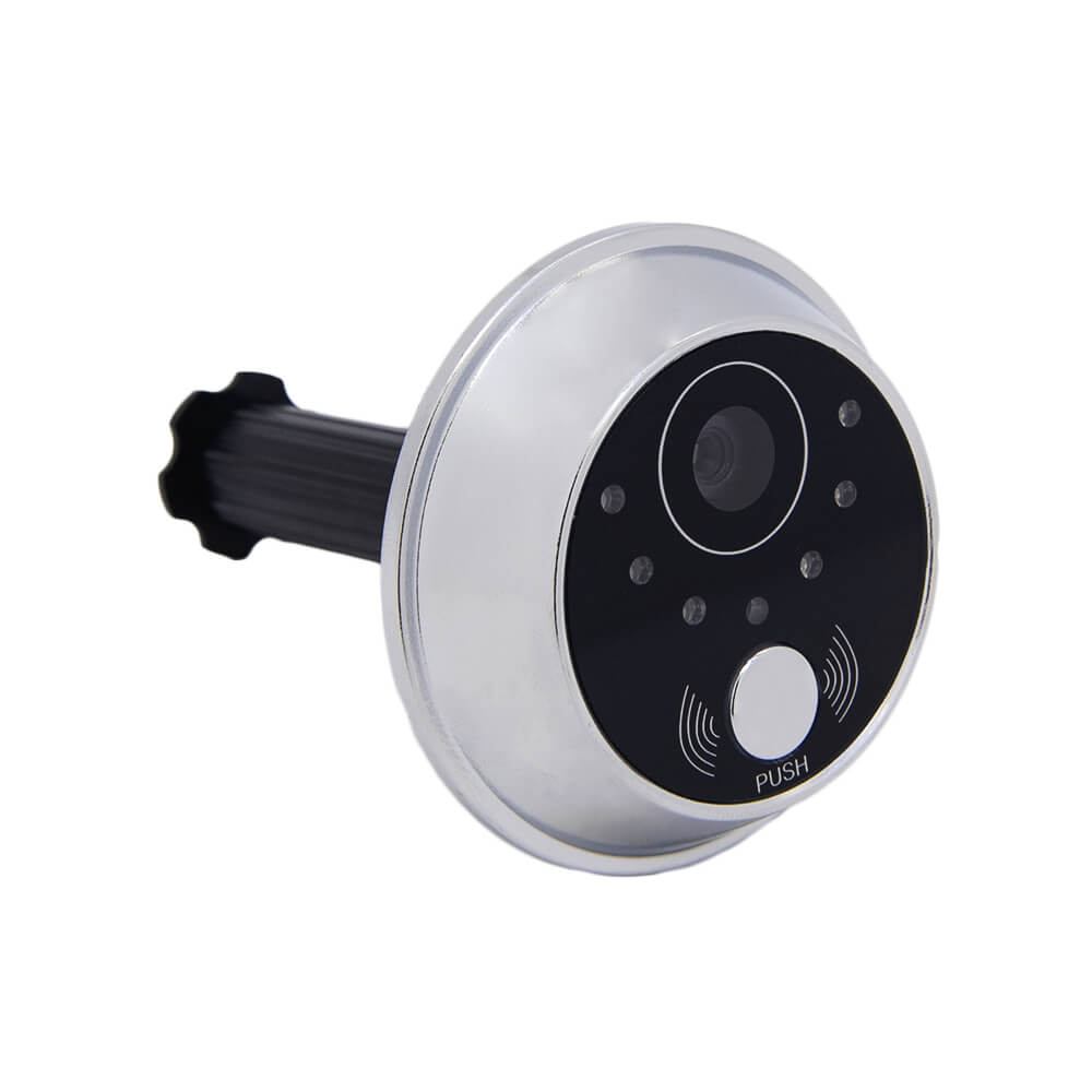 Видеозаписывающее устройство для обзора лестничной площадки. Монтируется в дверное полотно толщиной 35-75 мм, диаметр отверстия для монтажа - 14 мм. На 2.4 дюймовом ЖК-дисплее отчетливо видно всё, что происходит за дверью. Предусмотрено 32 мелодии звонка, три уровня громкости. Прибор оснащен кнопкой вызова, микрофоном, датчиком движения, срабатывающим при появлении человека в радиусе до 5 метров. Для съемки в условиях плохой освещенности имеется ИК подсветка. Питается глазок от 2 батареек типа АА.